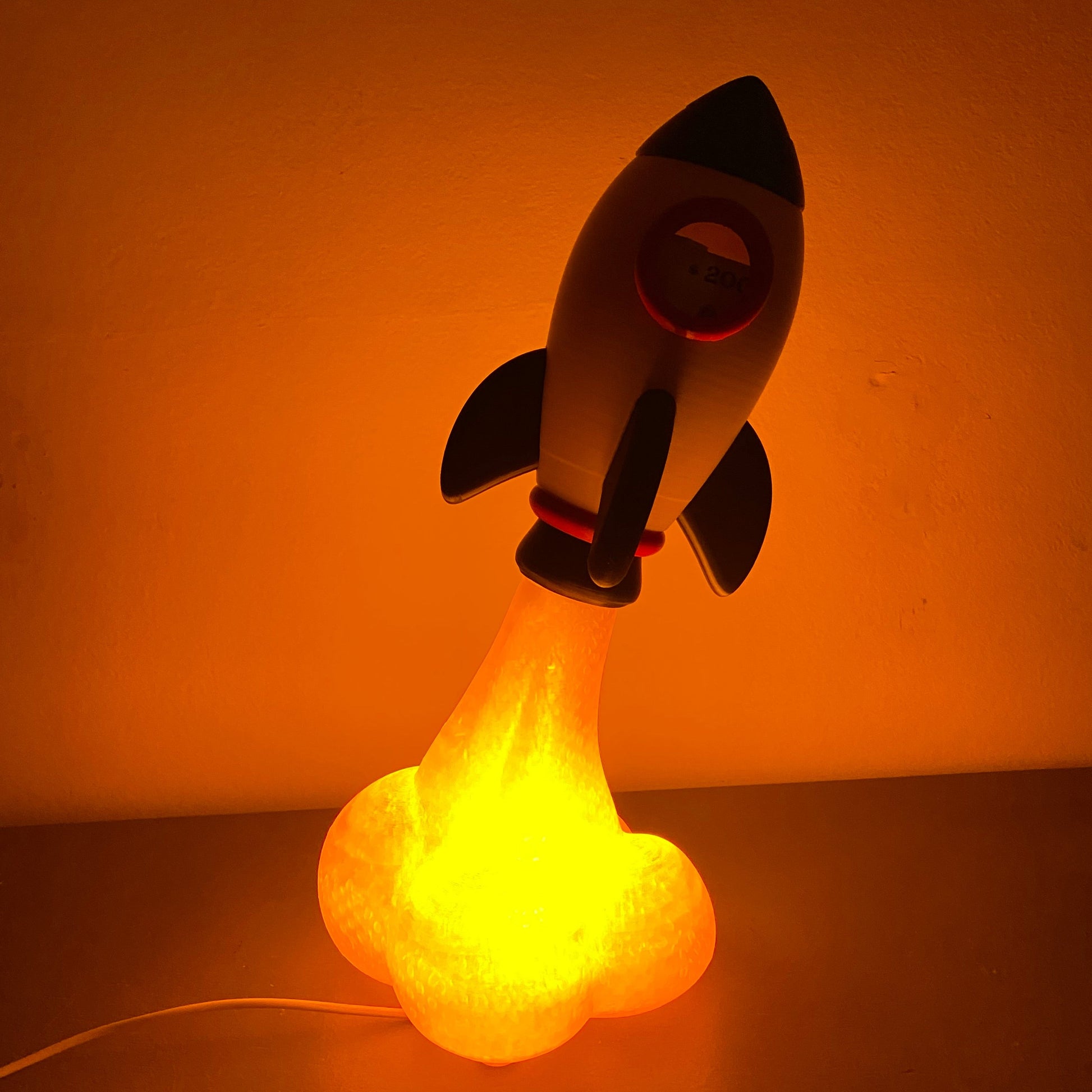 Este cohete 2 en 1 es lámpara de noche con luz cálida y alcancía para tus ahorros. Su diseño impreso en 3D tiene el tamaño perfecto para destacar en cualquier mesa: 33 cm de alto x 13 cm de ancho. Decoración, luz y ahorro en un solo lugar.